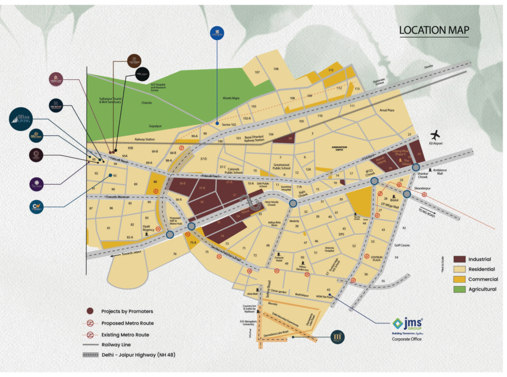 Located right along NH-48 (Delhi–Jaipur Expressway), ensuring smooth road connectivity.